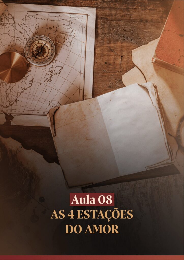 Na última aula, somos conduzidos a contemplar as quatro estações do amor como fases naturais da vida a dois — do encanto ao recolhimento sereno. Aprendemos que amar exige atravessar ciclos, aceitar mudanças e permanecer mesmo nos invernos da alma. Um encerramento inspirador, que nos lembra que a maturidade afetiva é fruto de perseverança, verdade e presença fiel.
